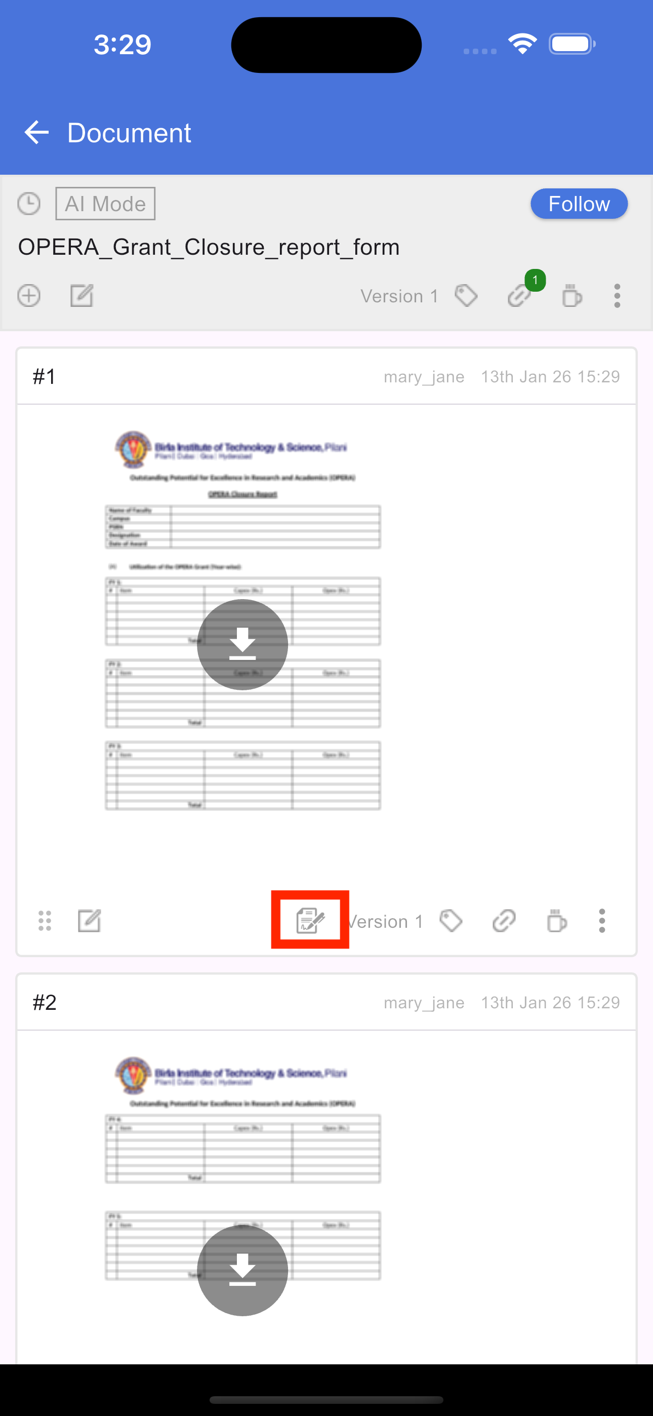 View document versions